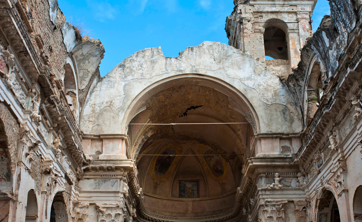 Heading towards the upper part of the village, we come to what remains of the church of Sant’Egidio, now one of the symbols of this place. Not far away are gardens created among the collapsed houses, where plants and flowers thrive between the stone walls.
