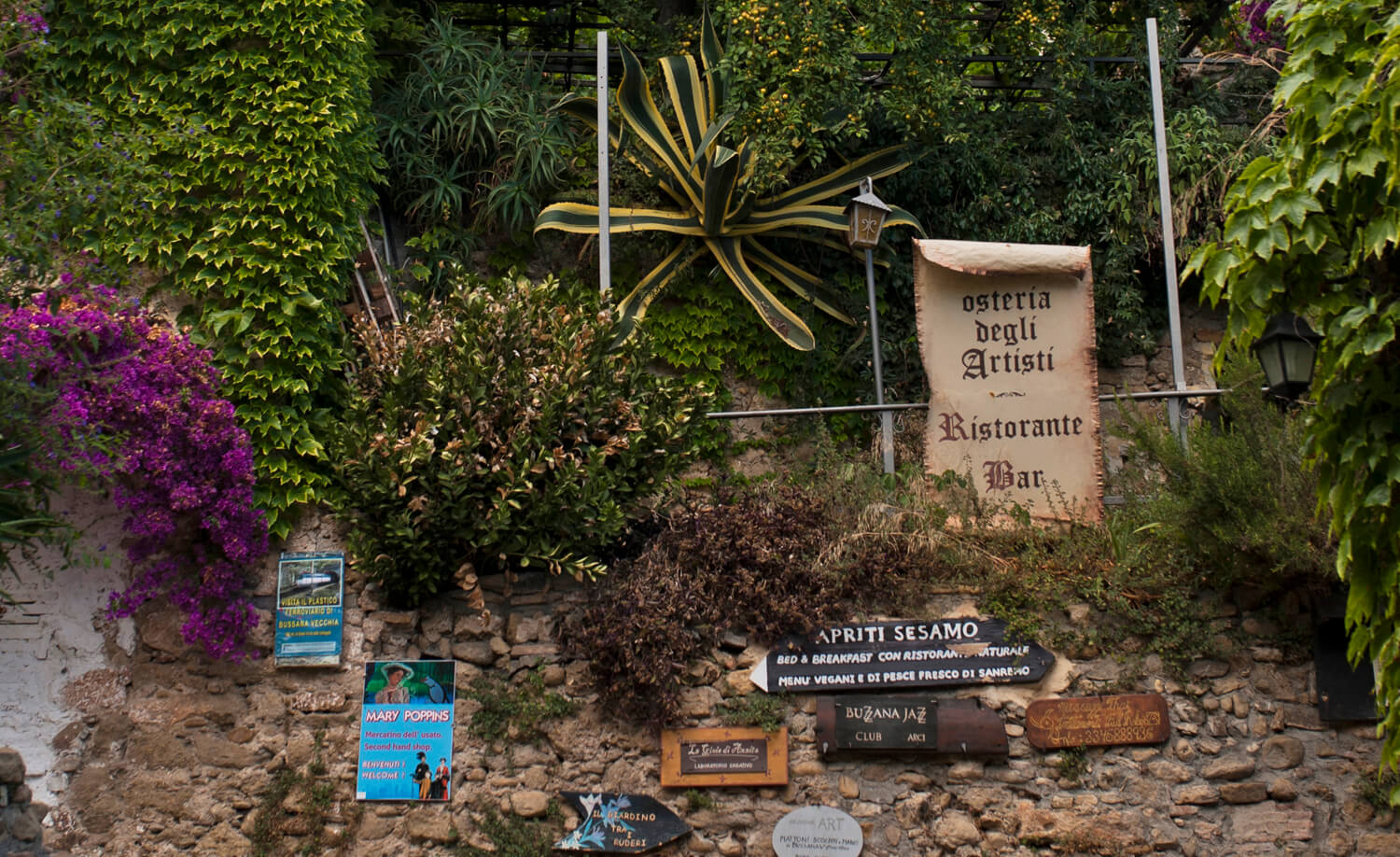 A few kilometres from Sanremo, perched on a hill overlooking the sea, Bussana Vecchia is one of the most astonishing places on the Riviera di Ponente. The medieval village was almost completely destroyed by an earthquake in 1887 and was abandoned for decades, until it was “adopted” in the nineteen-sixties by an international community of artists who turned the ruins into ateliers, workshops and galleries.