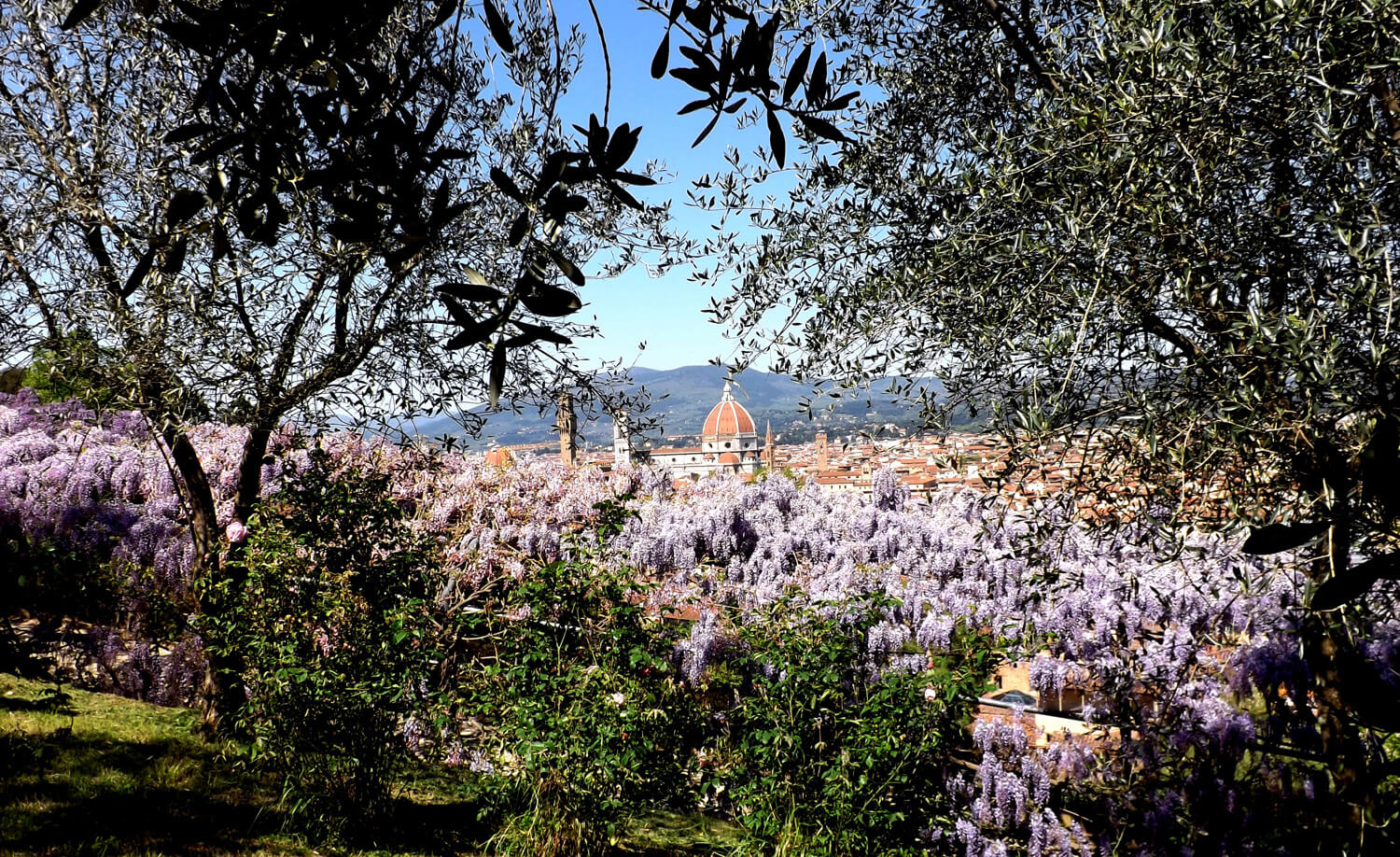 La giornata inizia con una colazione da Ditta Artigianale Oltrarno, tra ricercate miscele di caffè e atmosfera fifties. Poco distante si imbocca la ripida e suggestiva Costa San Giorgio. Lungo il percorso, una sosta al Giardino Bardini regala una delle viste più belle su Firenze, ancora più spettacolare in primavera, quando il glicine è in fiore.