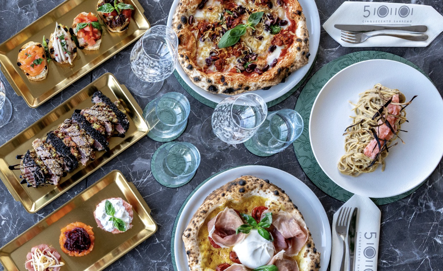 A little corner of Naples in Sanremo, complete with blue football jerseys and mandolins. The menu features classic pizza a ruota di carro, fried pizza and filled crust pizza. Upstairs is Bella’Mbriana restaurant, for more Neapolitan specialities.