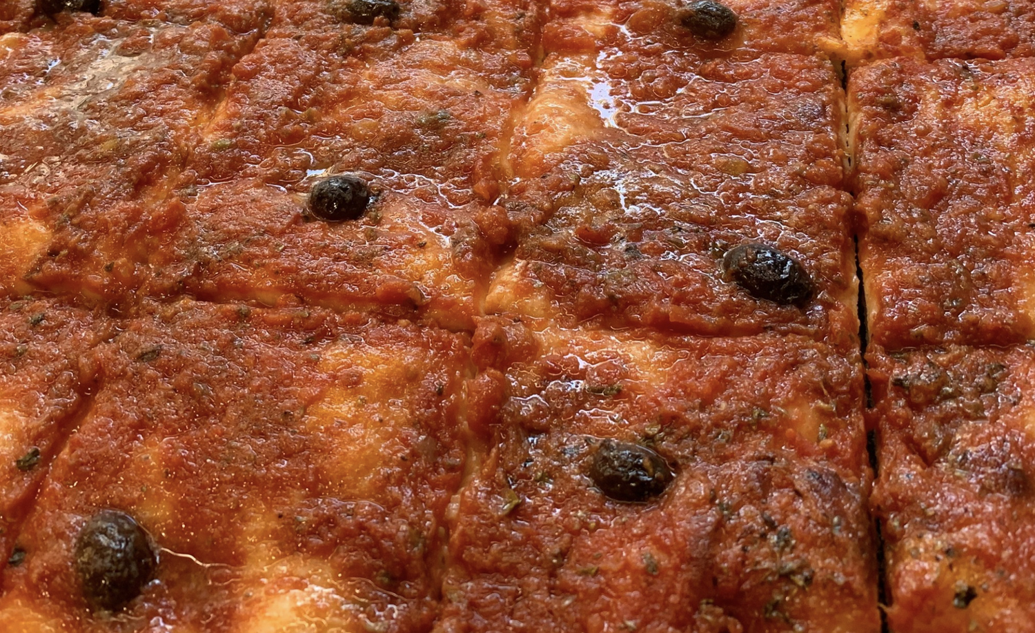 The typical focaccia of Liguria di Ponente, filled with tomato sauce, anchovies, Taggiasca olives, capers, garlic and oregano. The best of all are found at La Tavernetta, founded in 1950. Try it with the soft drink Spuma, as the locals do.