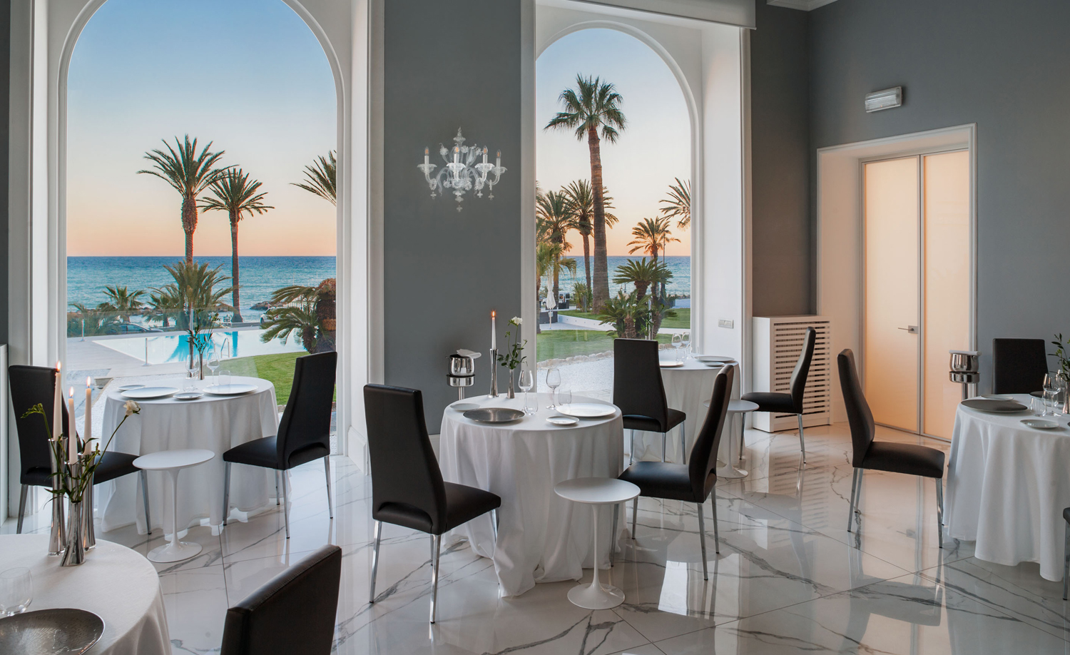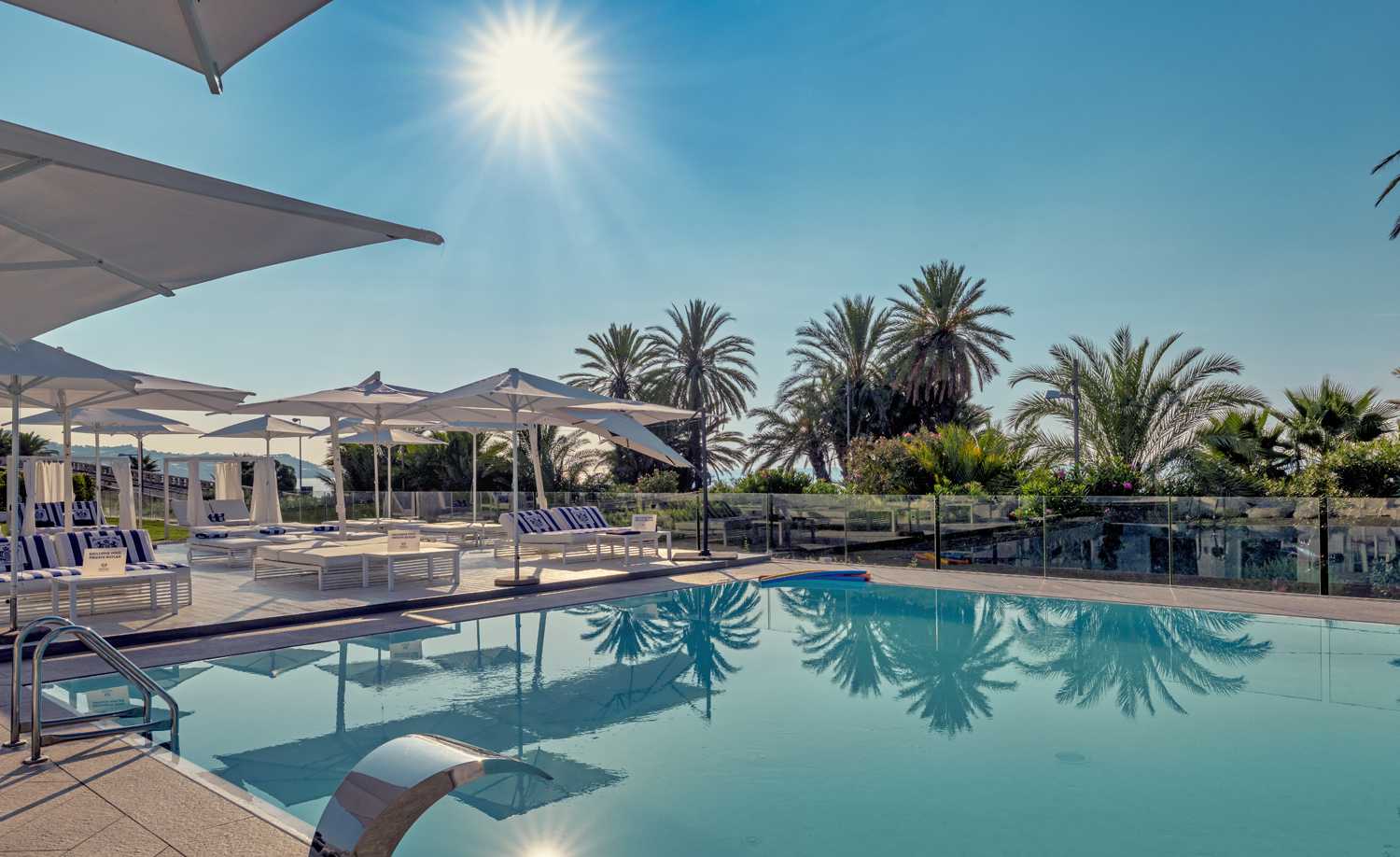 All’esterno, la nuova oasi fronte mare si apre come una scenografia, con salotti a cielo aperto, una piscina riscaldata immersa nel verde – perfetta per concedersi momenti di relax accompagnati dal suono delle onde – e la terrazza che al tramonto diventa protagonista di suggestivi aperitivi.